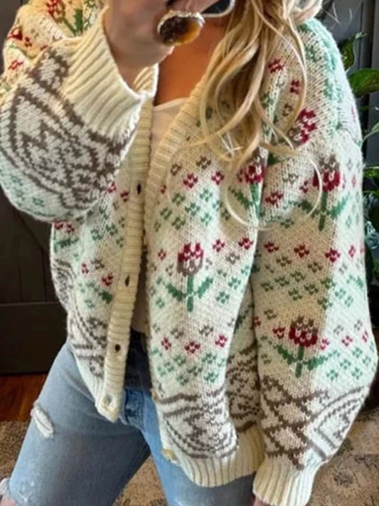 Floral Pattern Button-Up Cardigan