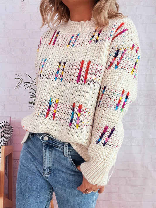 Colorful Round Neck Long Sleeve Sweater