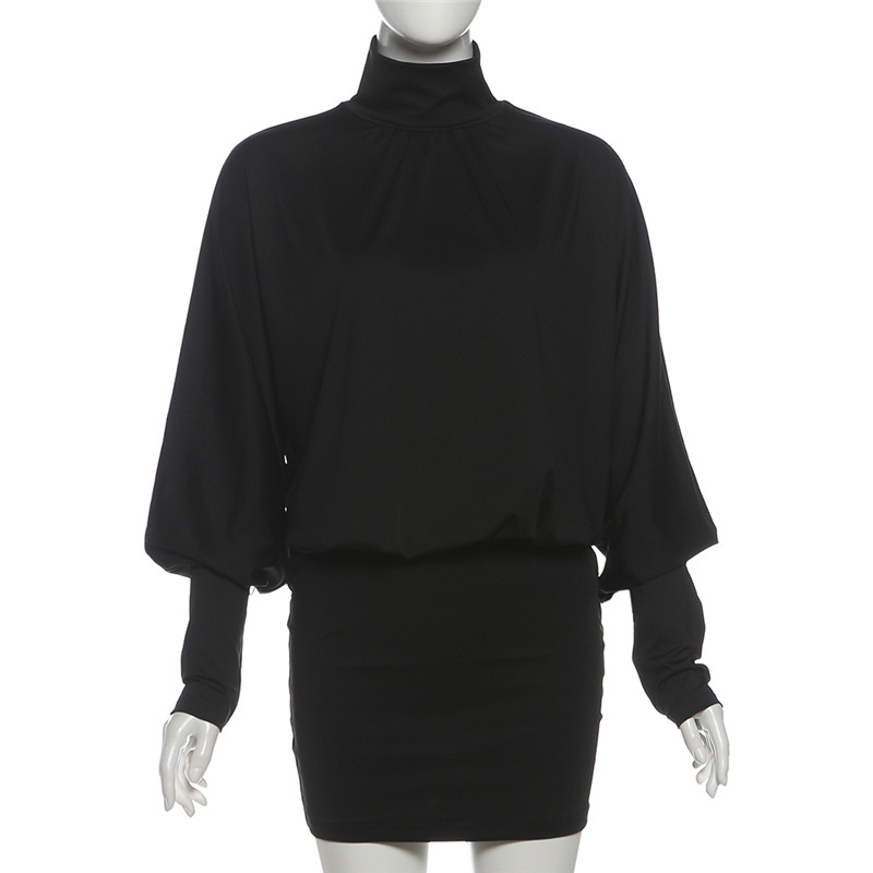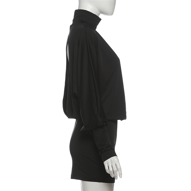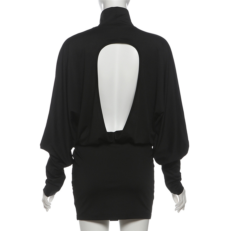 Autumn Winter Women Clothing Solid Color Sexy Turtleneck Long Sleeve Backless Baggy Package Hip Dress