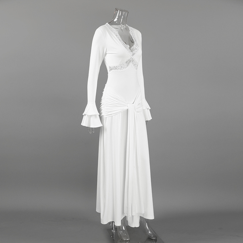 Spring Women Elegant Dress Elegant Design Sexy Lace Stitching Slim Fit Maxi Dress