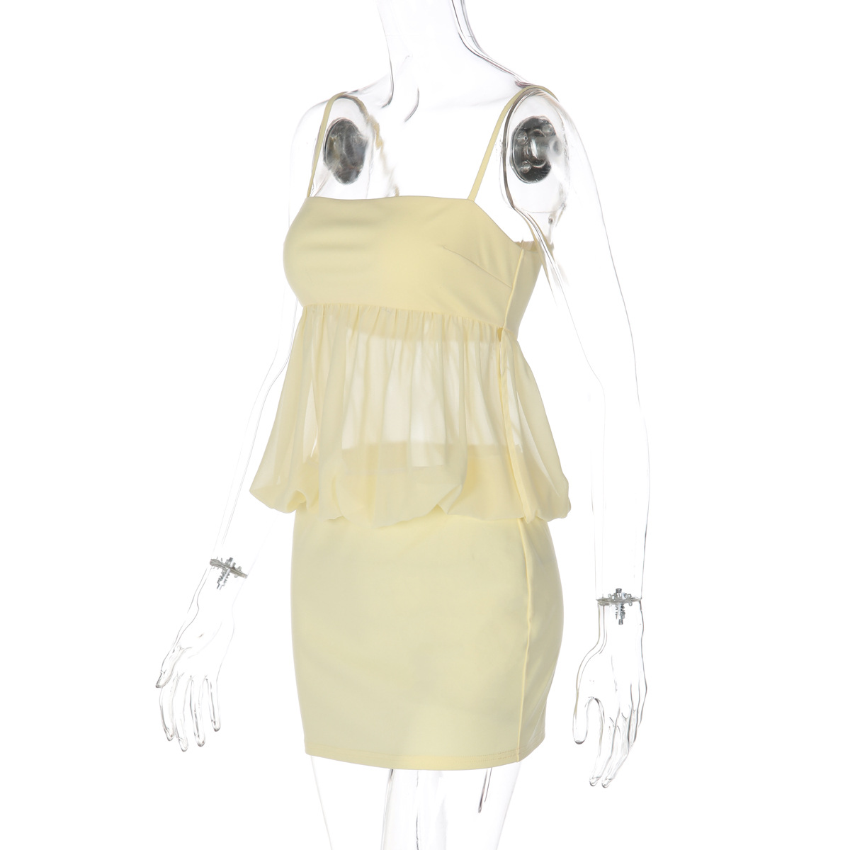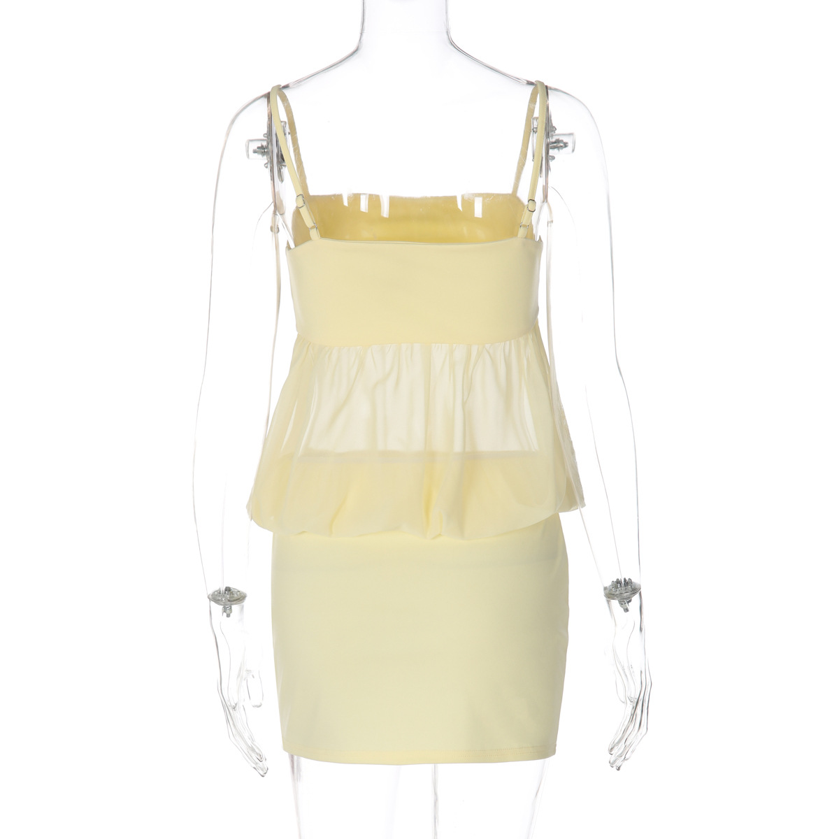 Women Clothing Summer off Neck Sexy Mesh See through Strap Sheath Dress